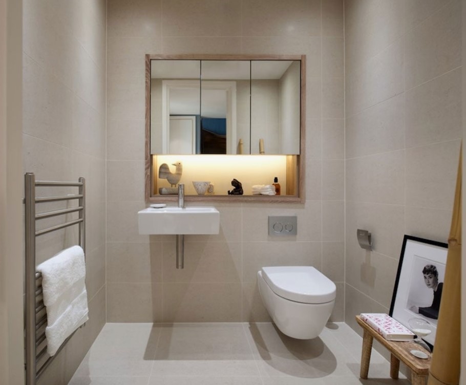 Projeto Concluído. Apresentamos um Lindo Banheiro elegante e moderno, adornado com características minimalistas e decorações, ilustrando estéticas contemporâneas de design de interiores.